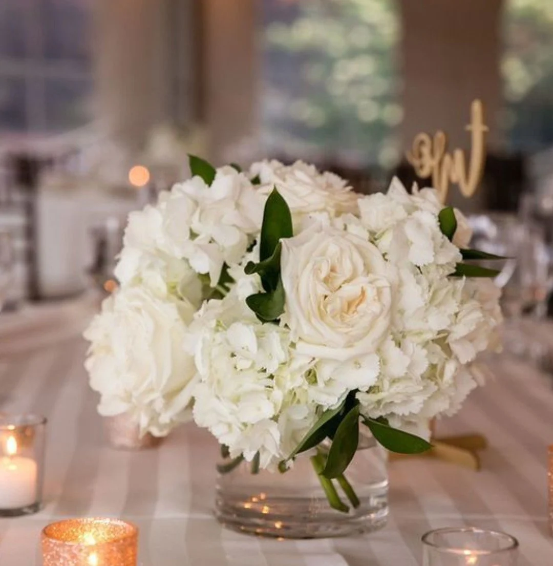 10 Guest Table Short Floral Cylinder Centerpieces (photo for style, not color palette)