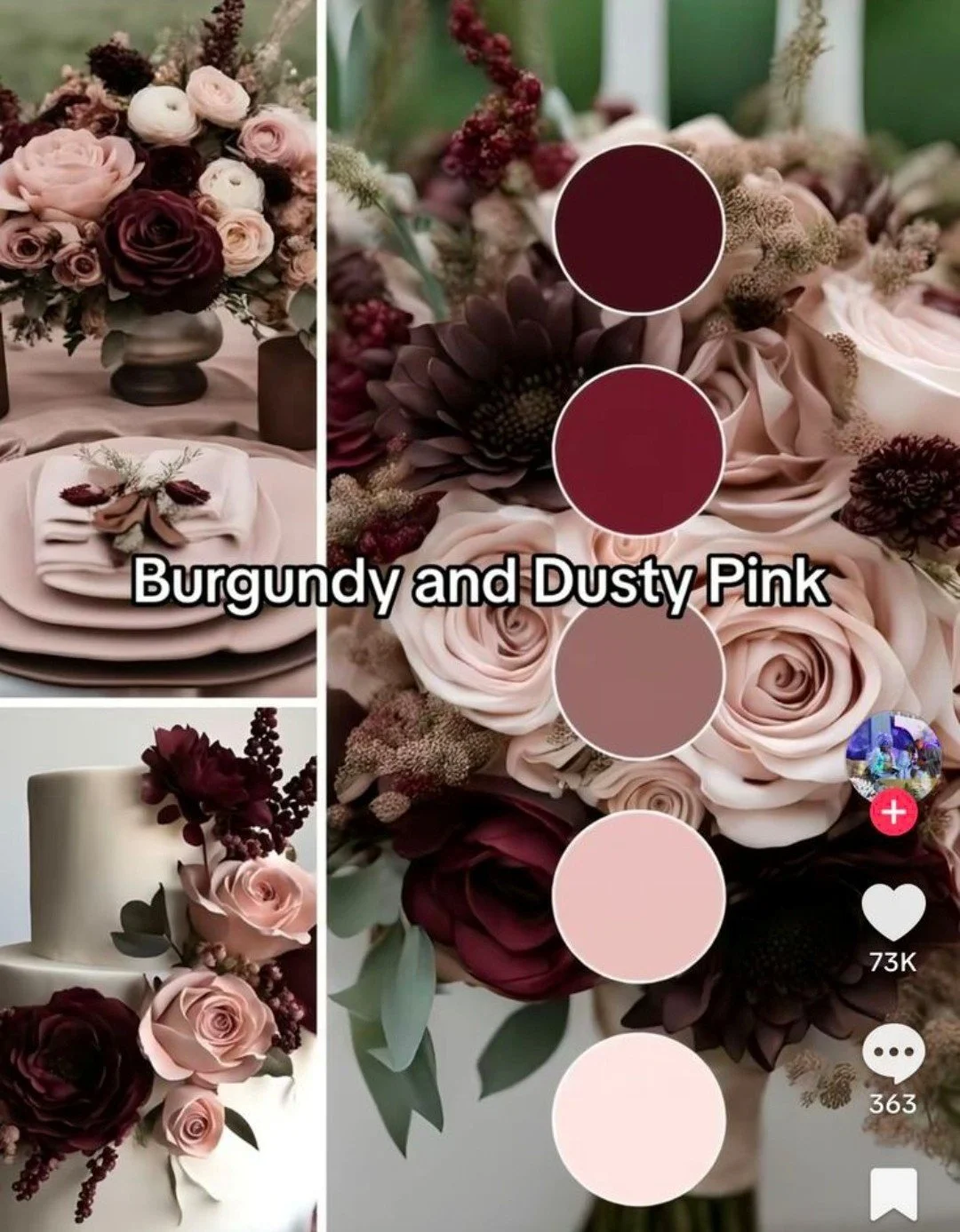 Ivories, blushes, dusty rose, mauves and burgundies on the venue gate (gate picture for coverage and style, not color)
