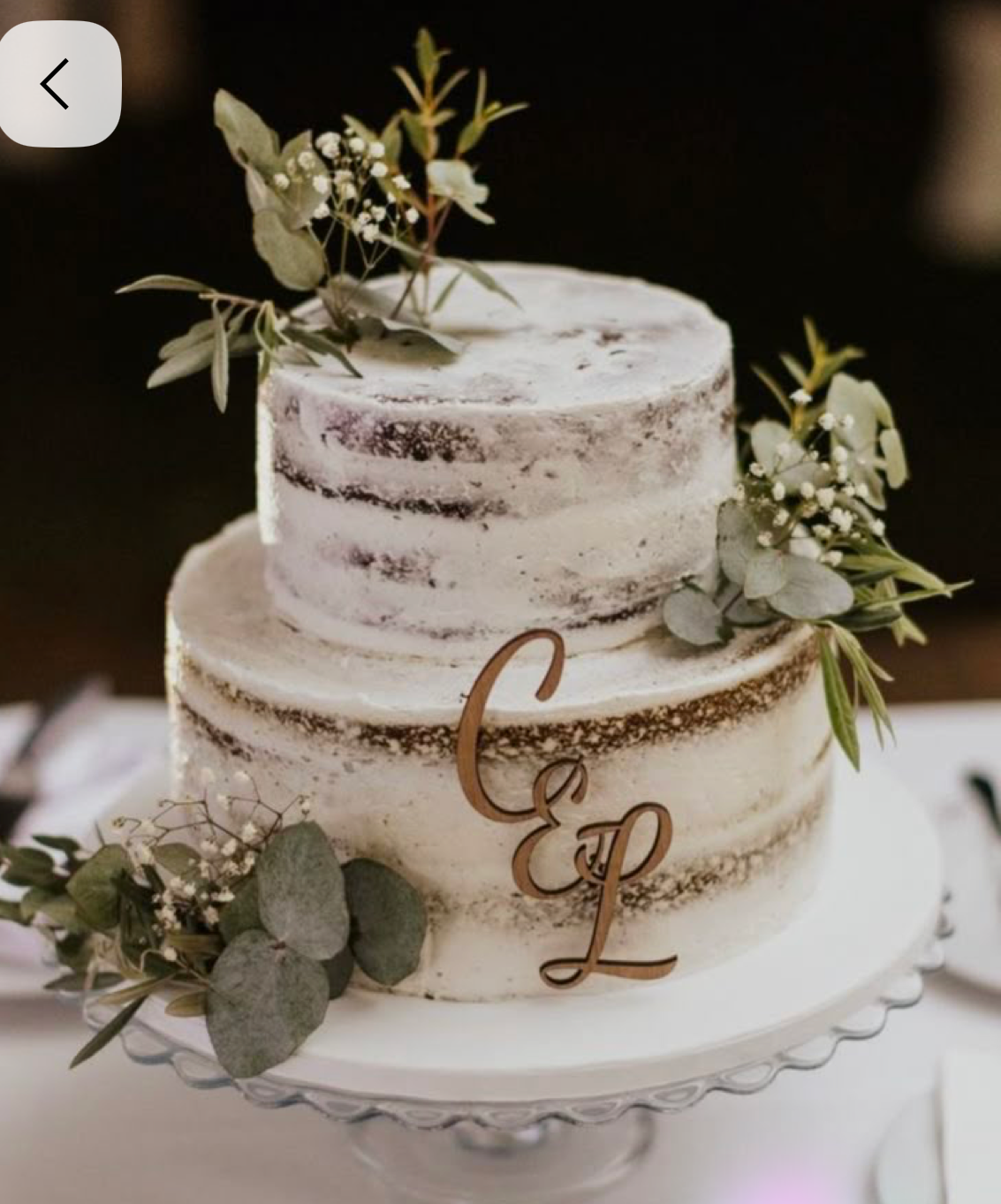 Florals to be customized through collaborative process, but preliminarily blooms to include white blooms with sage & dark greens