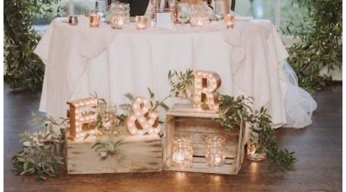 Sweetheart Table - greenery for around venue and client decor in front of table
